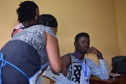 | Volunteer Idrissa Kamara receives the first dose of Janssen's prime-boost vaccine regimen at a health clinic in Sierra Leone.--Courtesy of J&J |