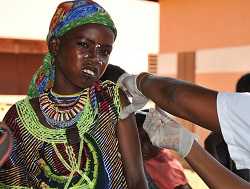 | A girl receives the MenAfriVac vaccine in Benin.--Courtesy of the WHO/Rodrigue Barry |