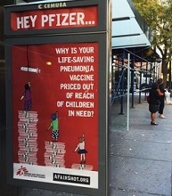 | A MSF bus ad outside of Pfizer's headquarters in New York--Courtesy of MSF |